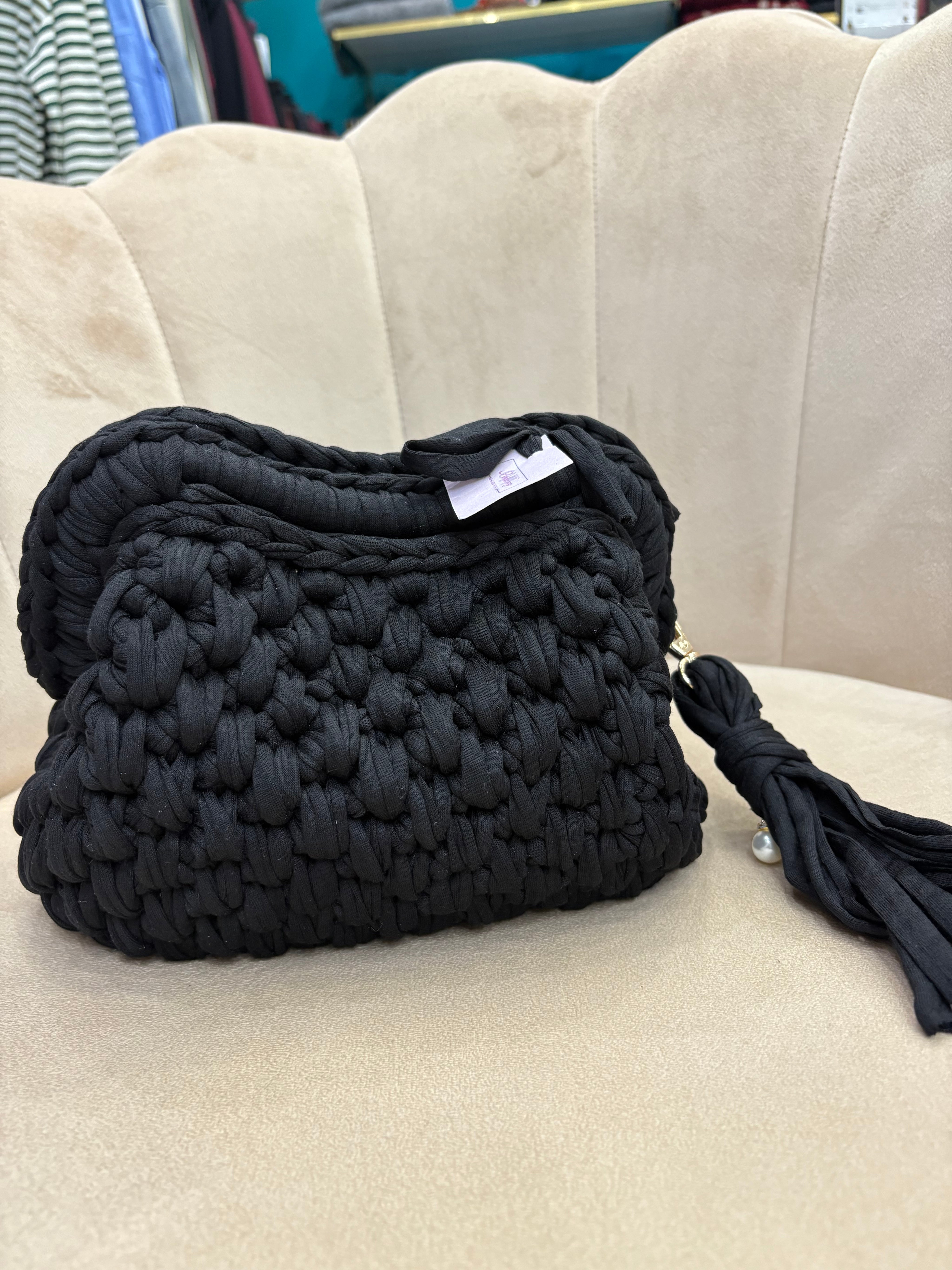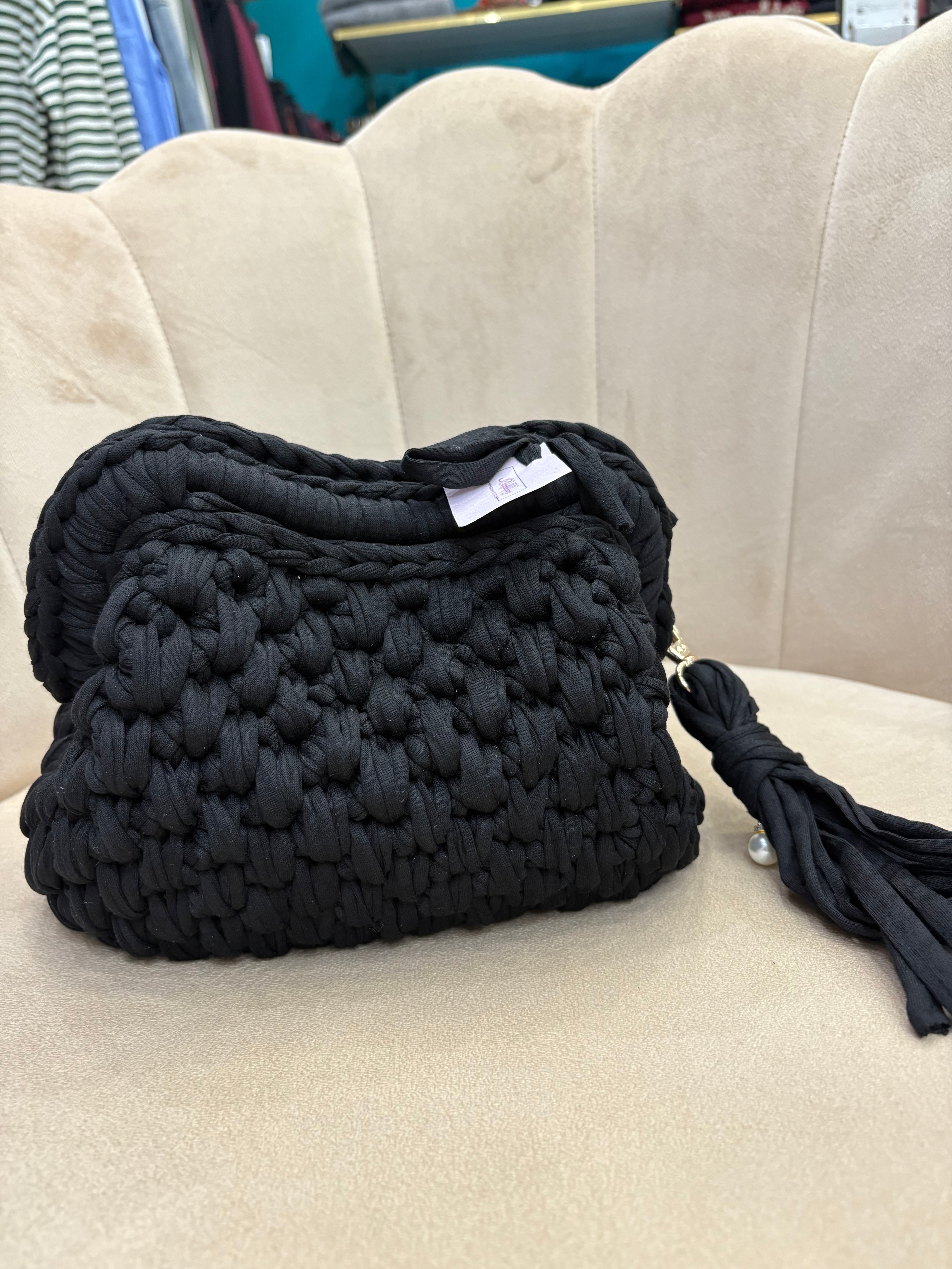 Clutch Nera con manico ad onda e ciondolo removibile.
