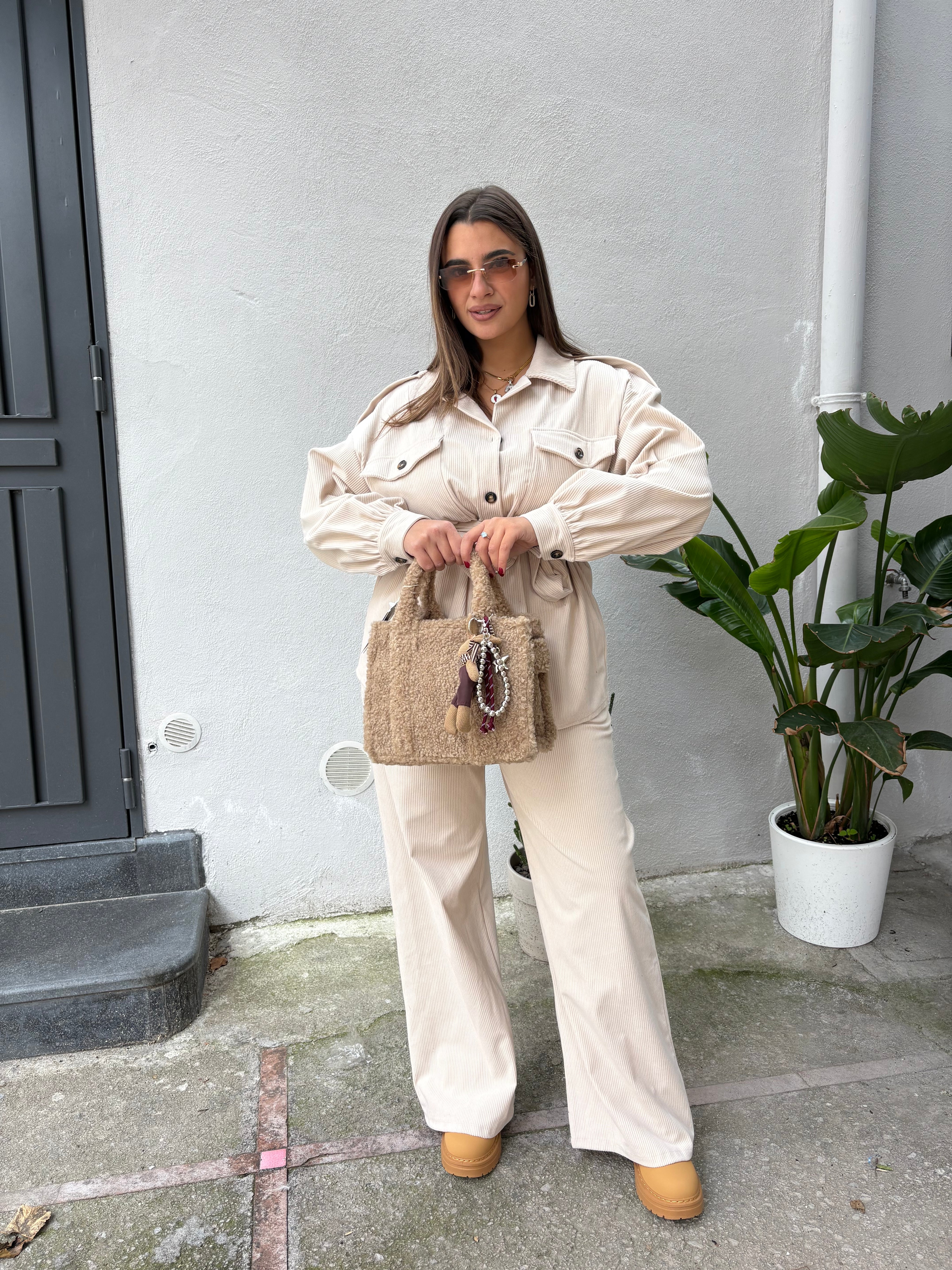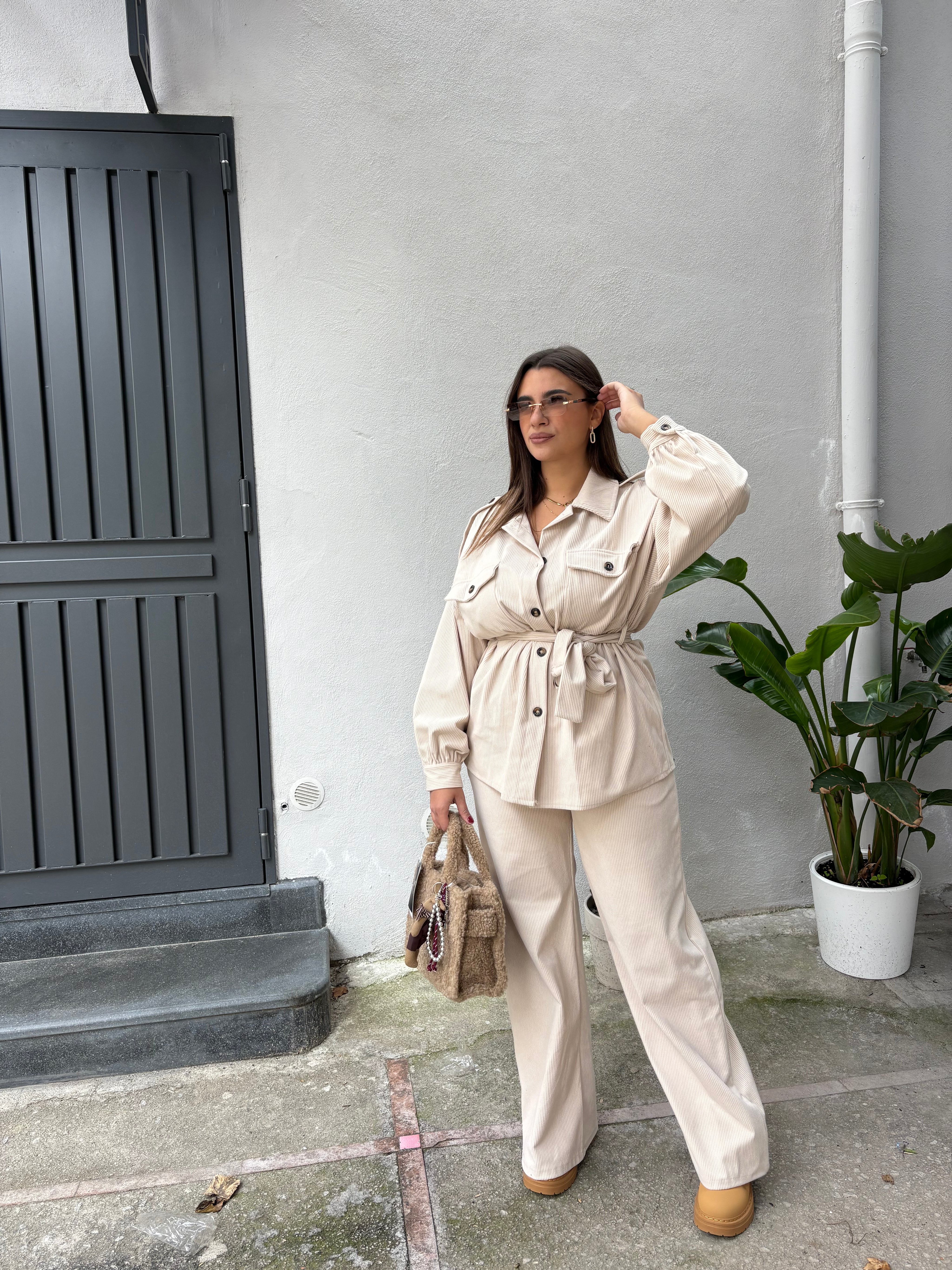 Coordinato a costine in vellutino veste da una 38 ad una 46. Taglia unica.