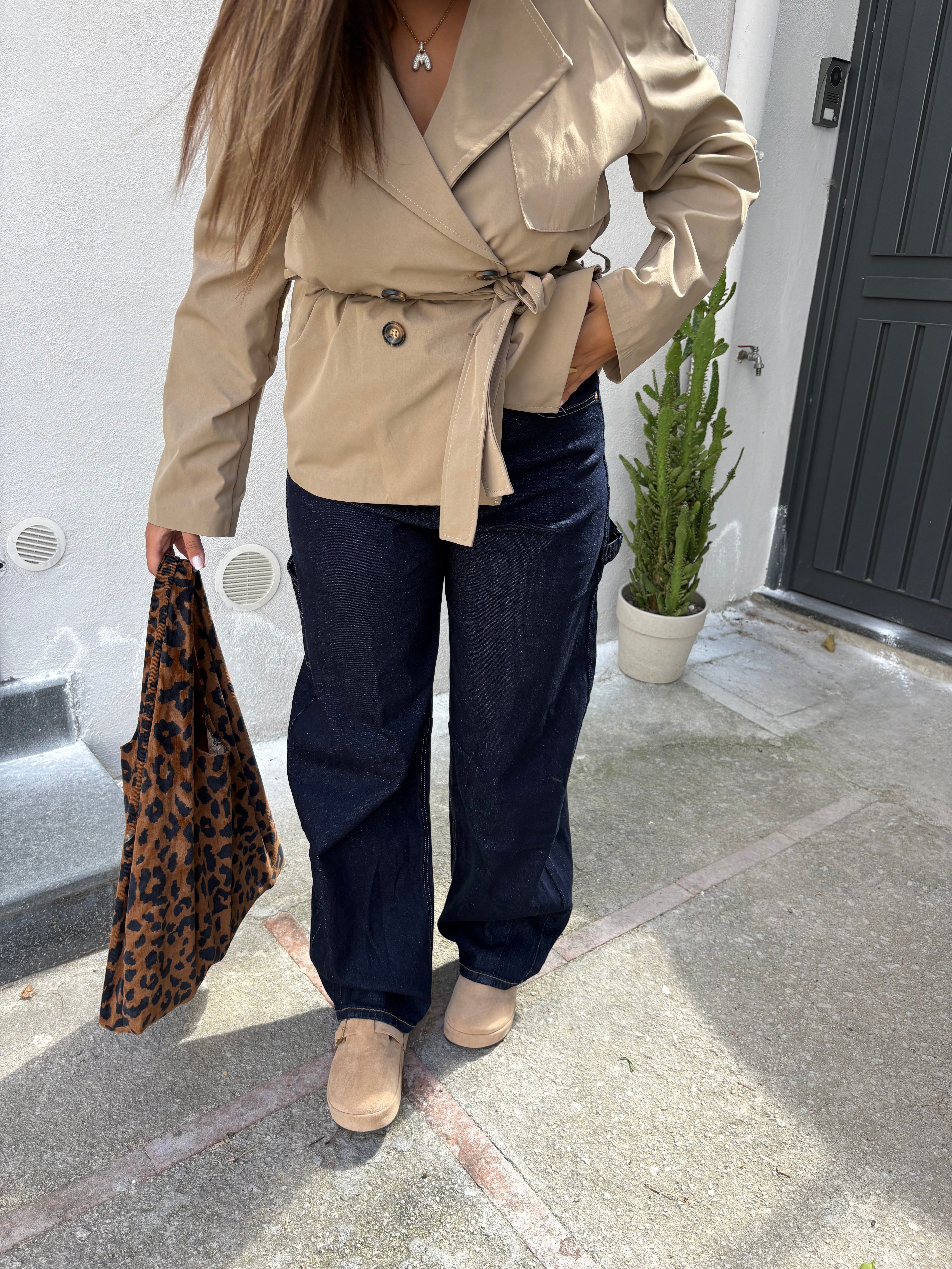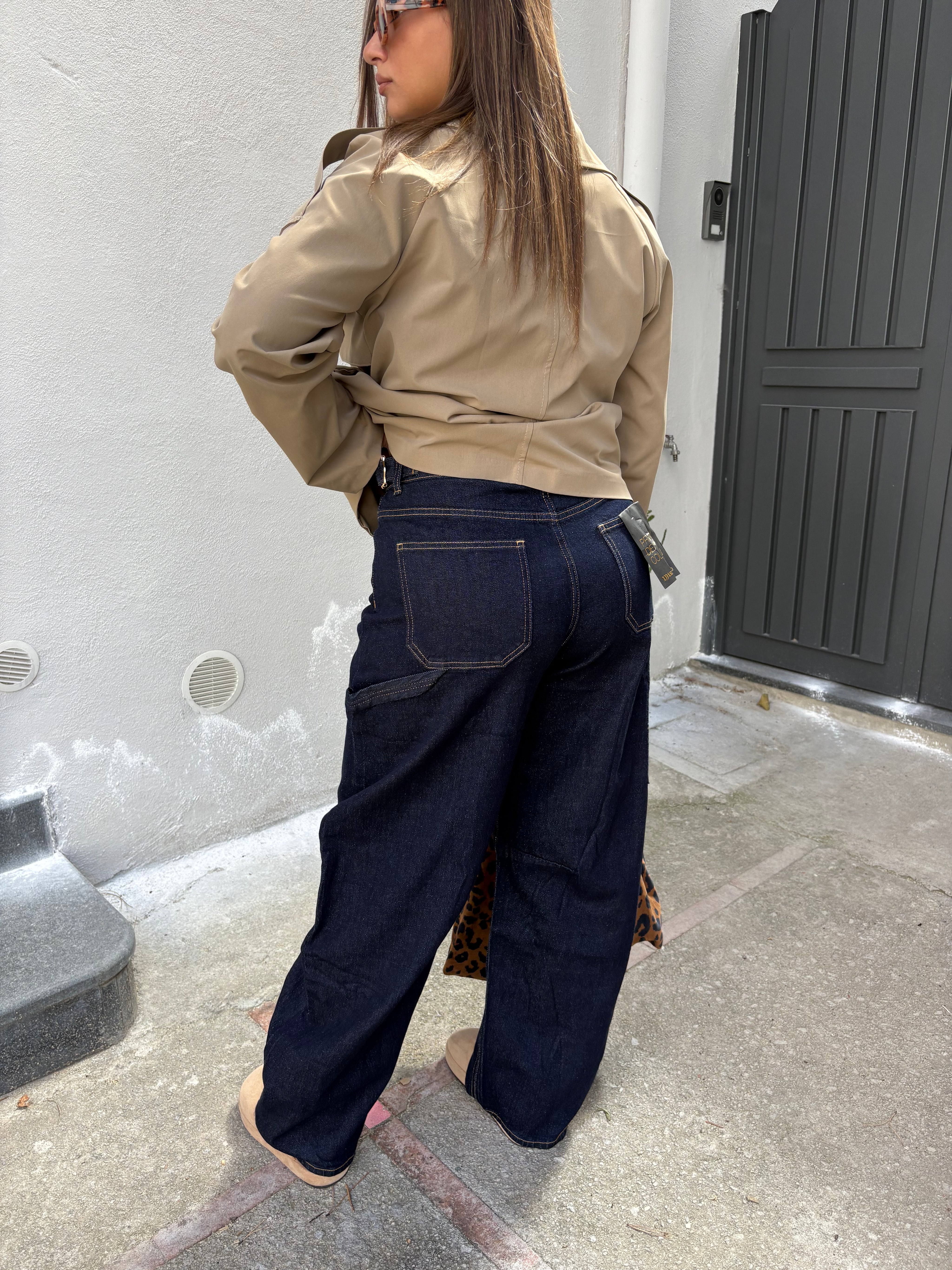Jeans ballon, lavaggio scuro, veste regolare, modello elastico.