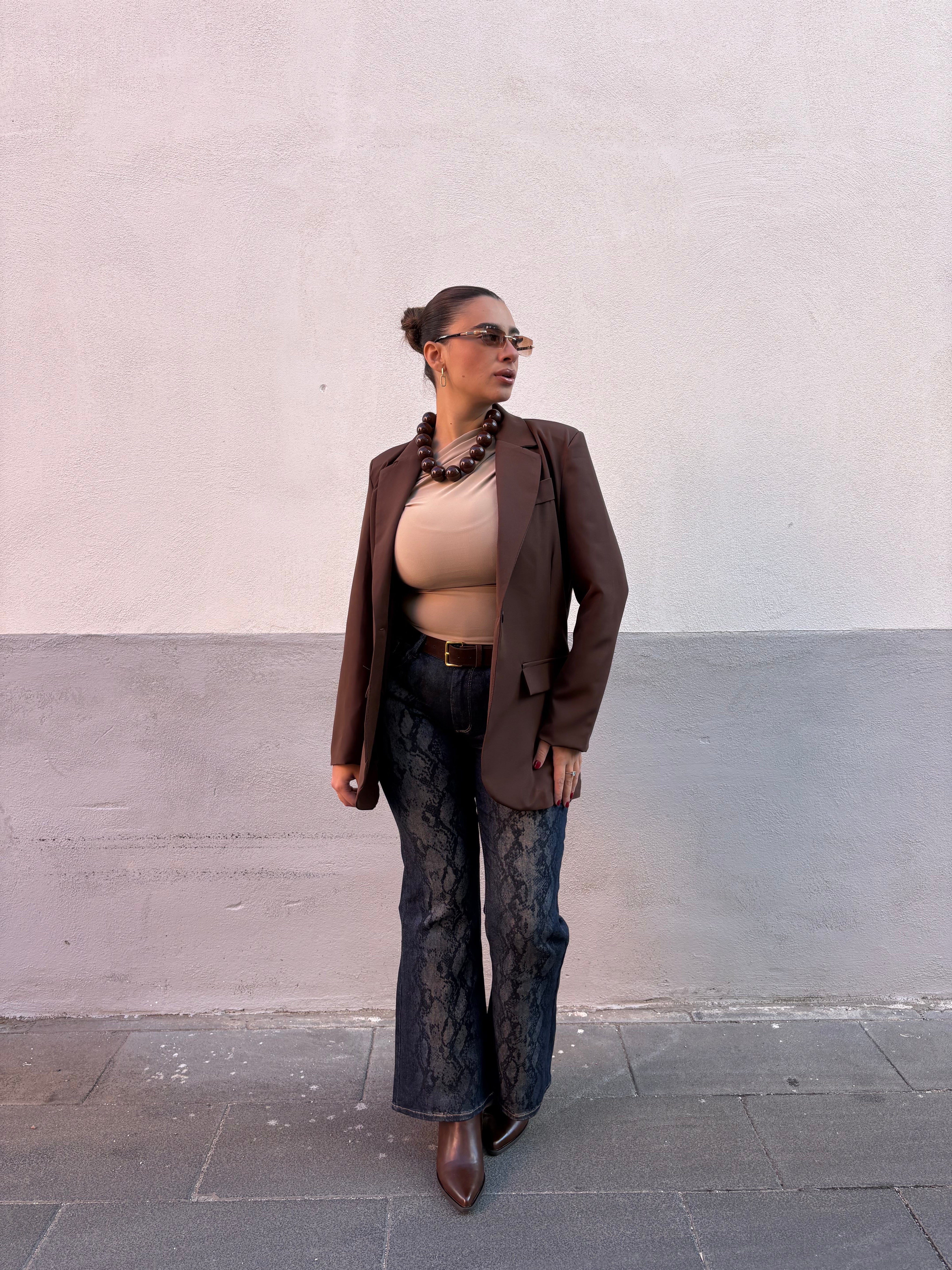 Jeans modello elastico a zampa, con cintura inclusa. Veste regolare, indosso una M.