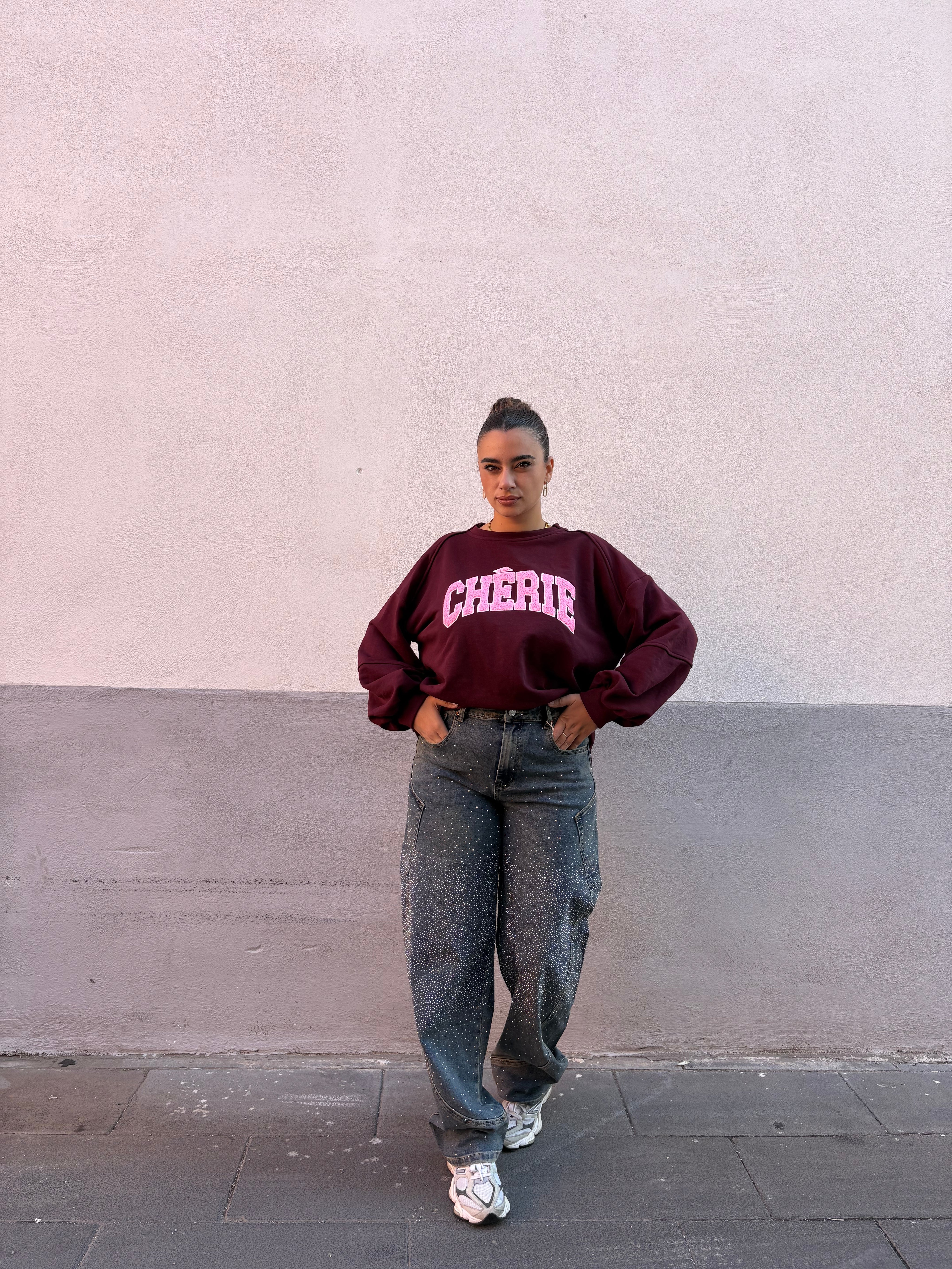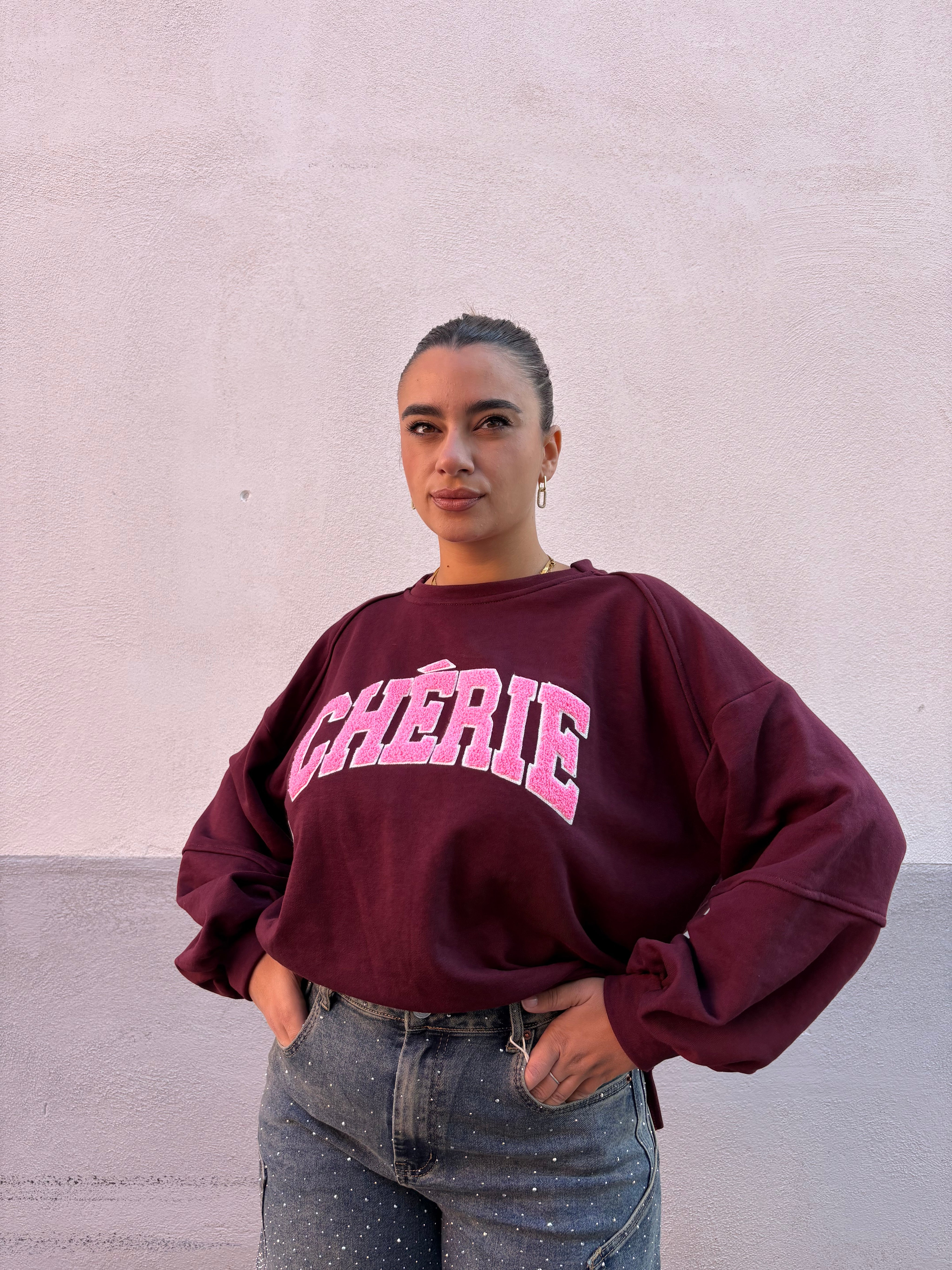 Felpa garzata, con frase a rilievo, veste da una xs ad una XL.
