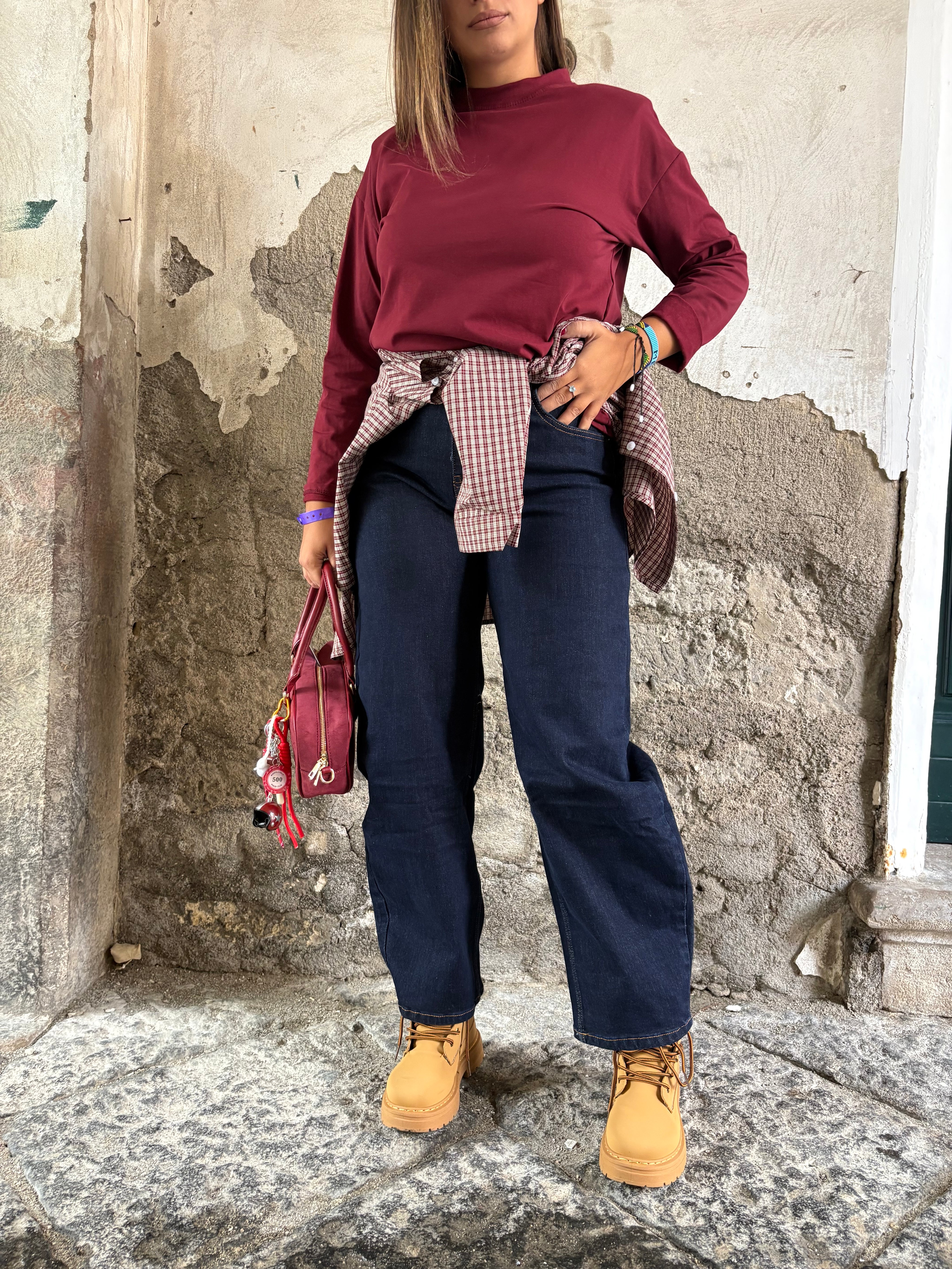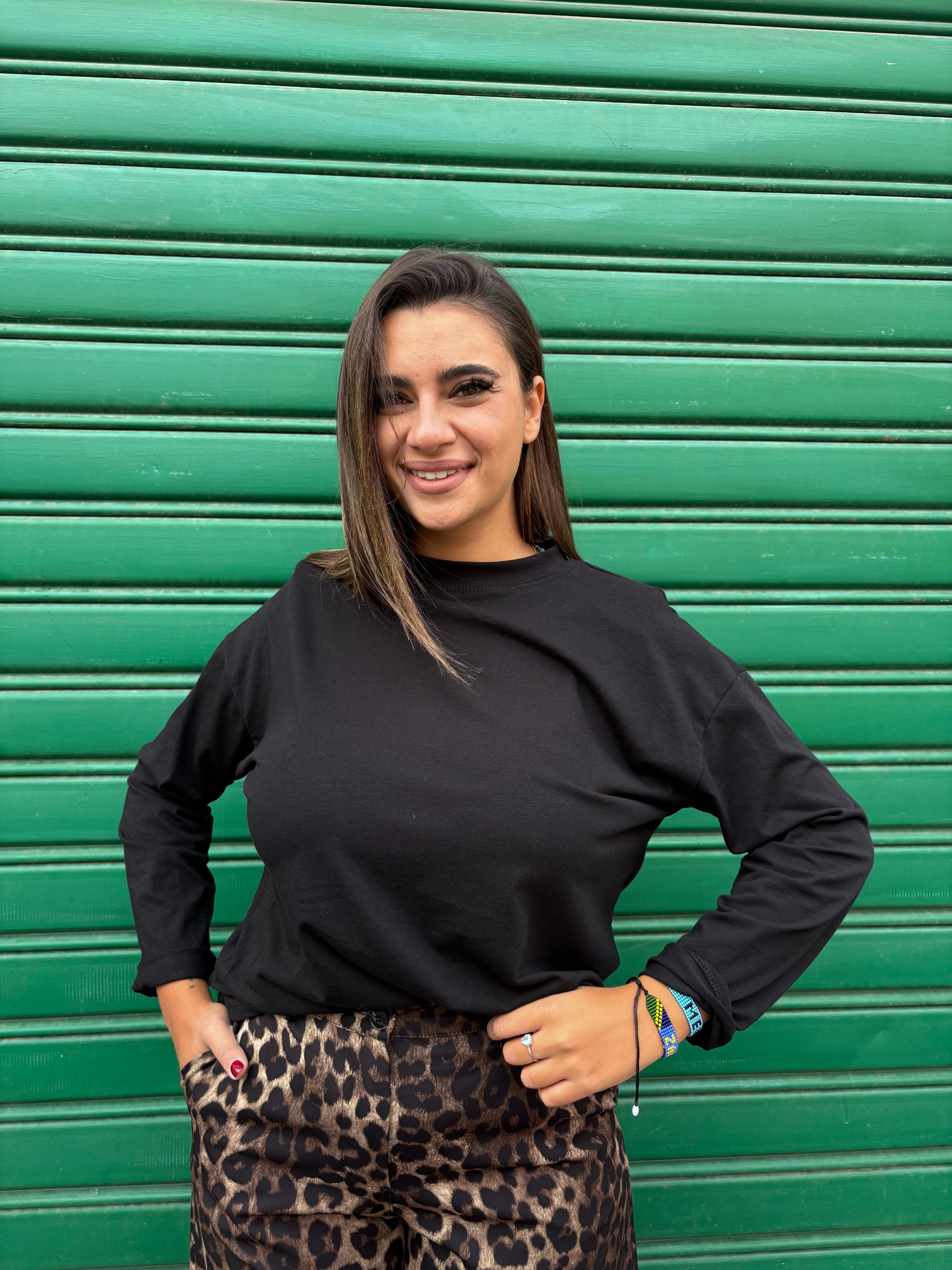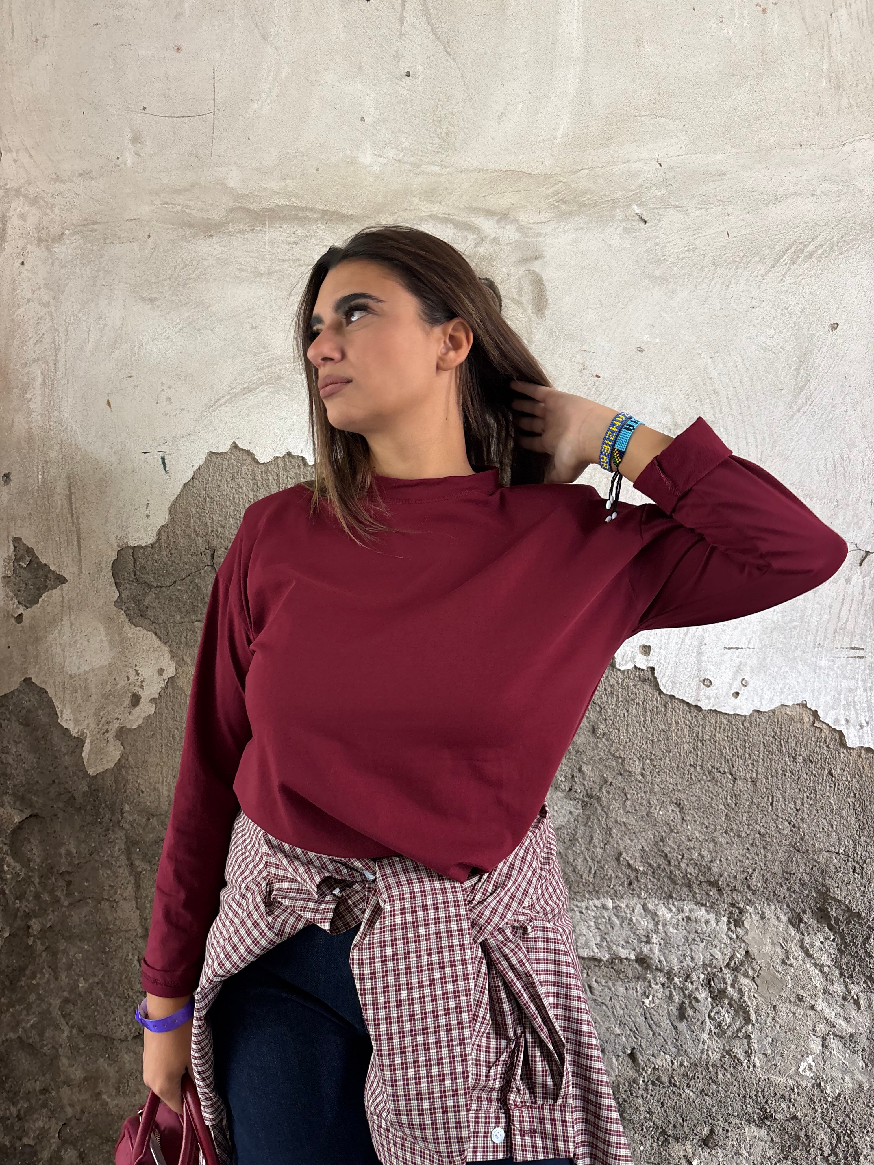 T-shirt super semplice, manica lunga, tessuto caldo. Veste da una 38 ad una 48.