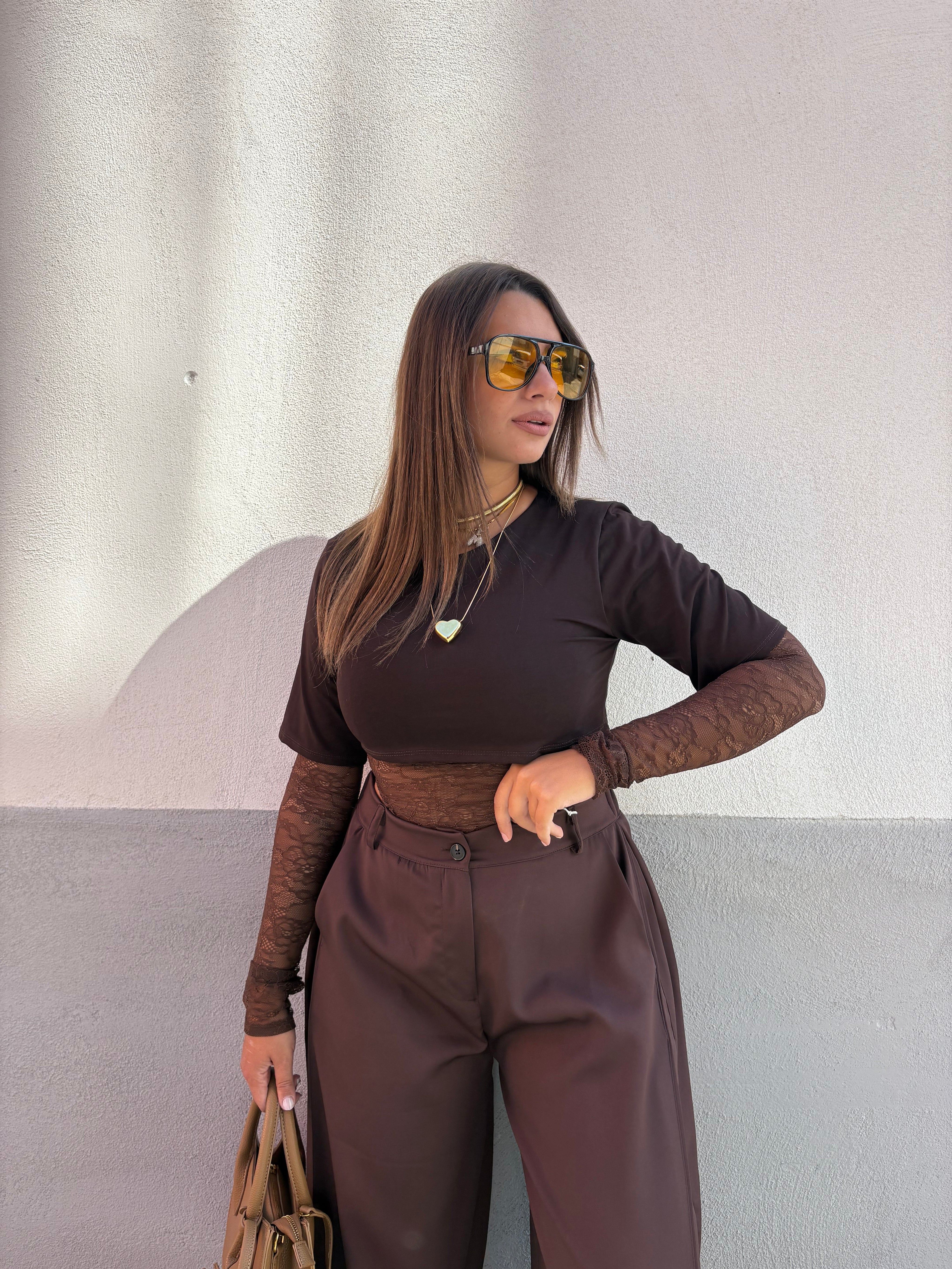 • T-shirt pizzo marrone