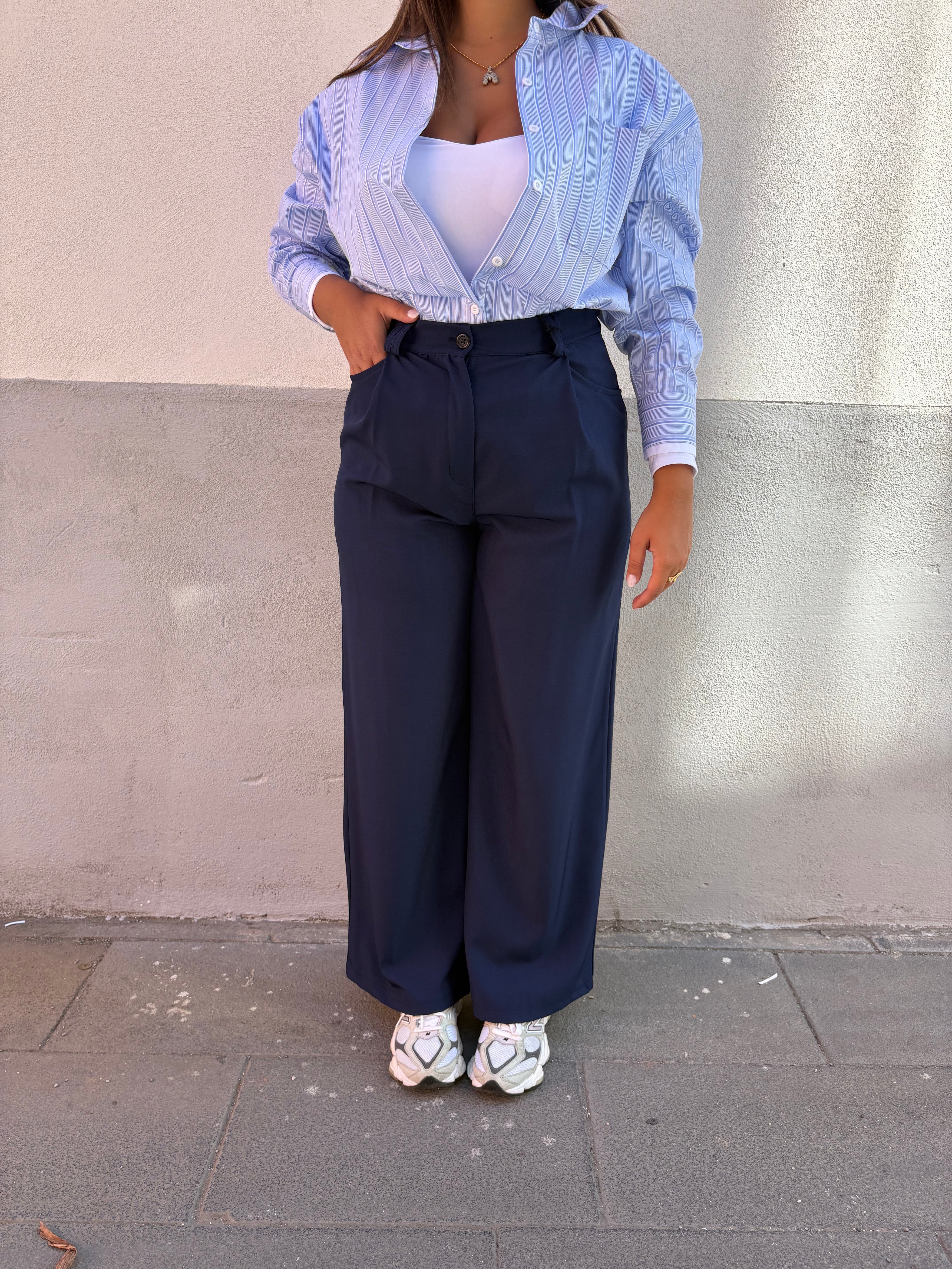 Pantalone palazzo, veste regolare, morbido sulla gamba.