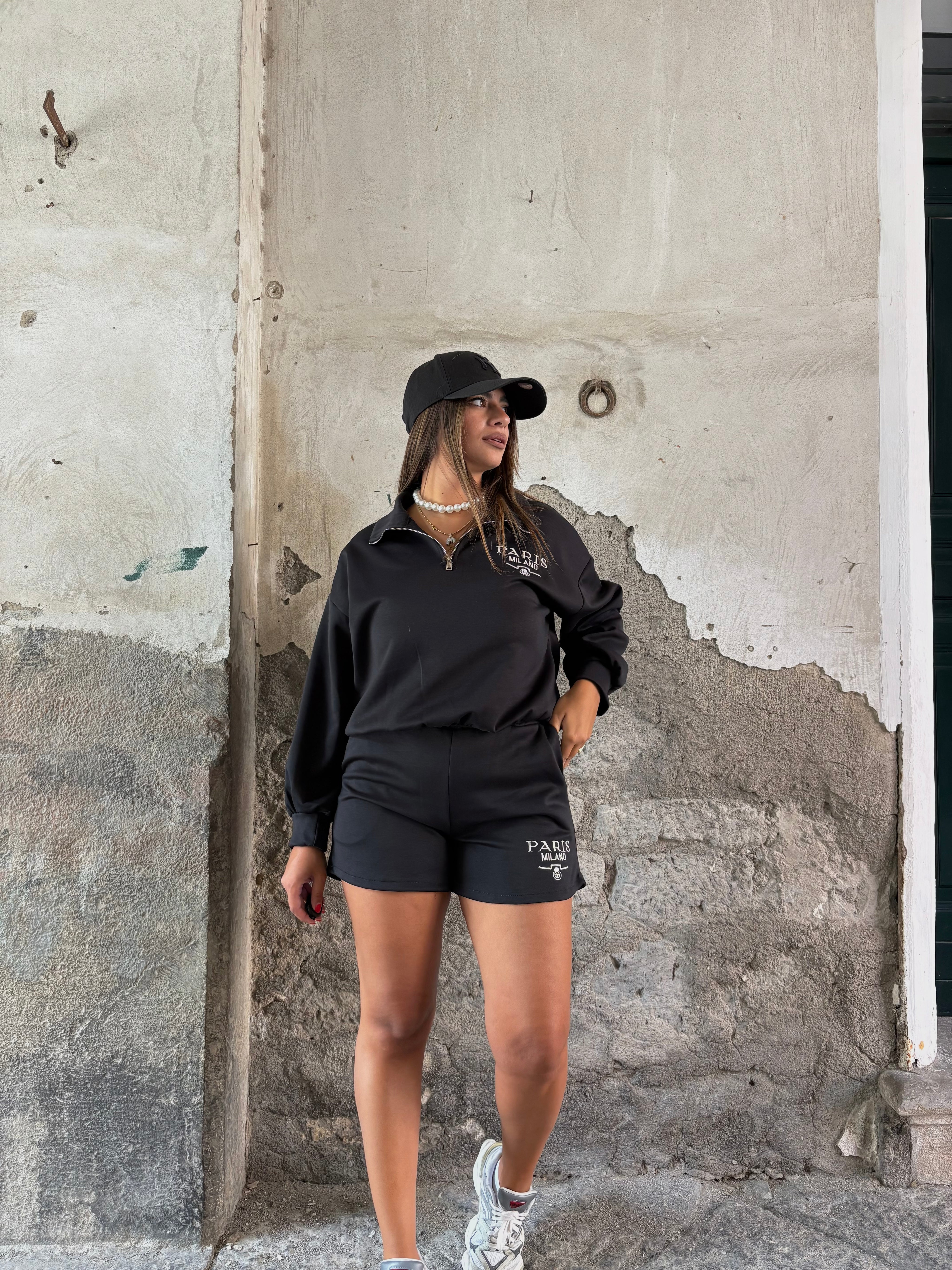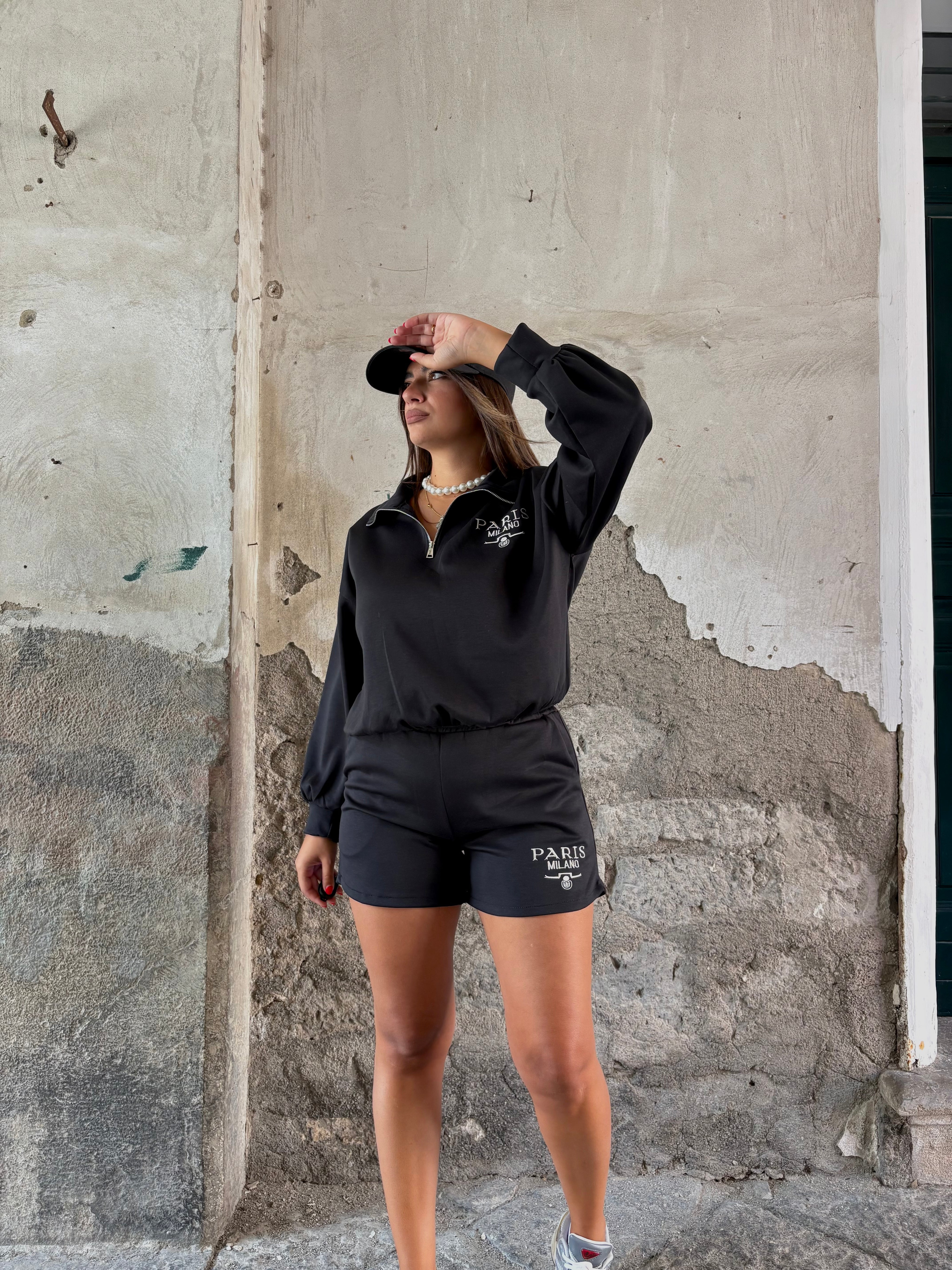 Coordinato in viscosa e poliestere, super carino, composto da felpa e pantaloncino. Veste dalla 38 alla 48.