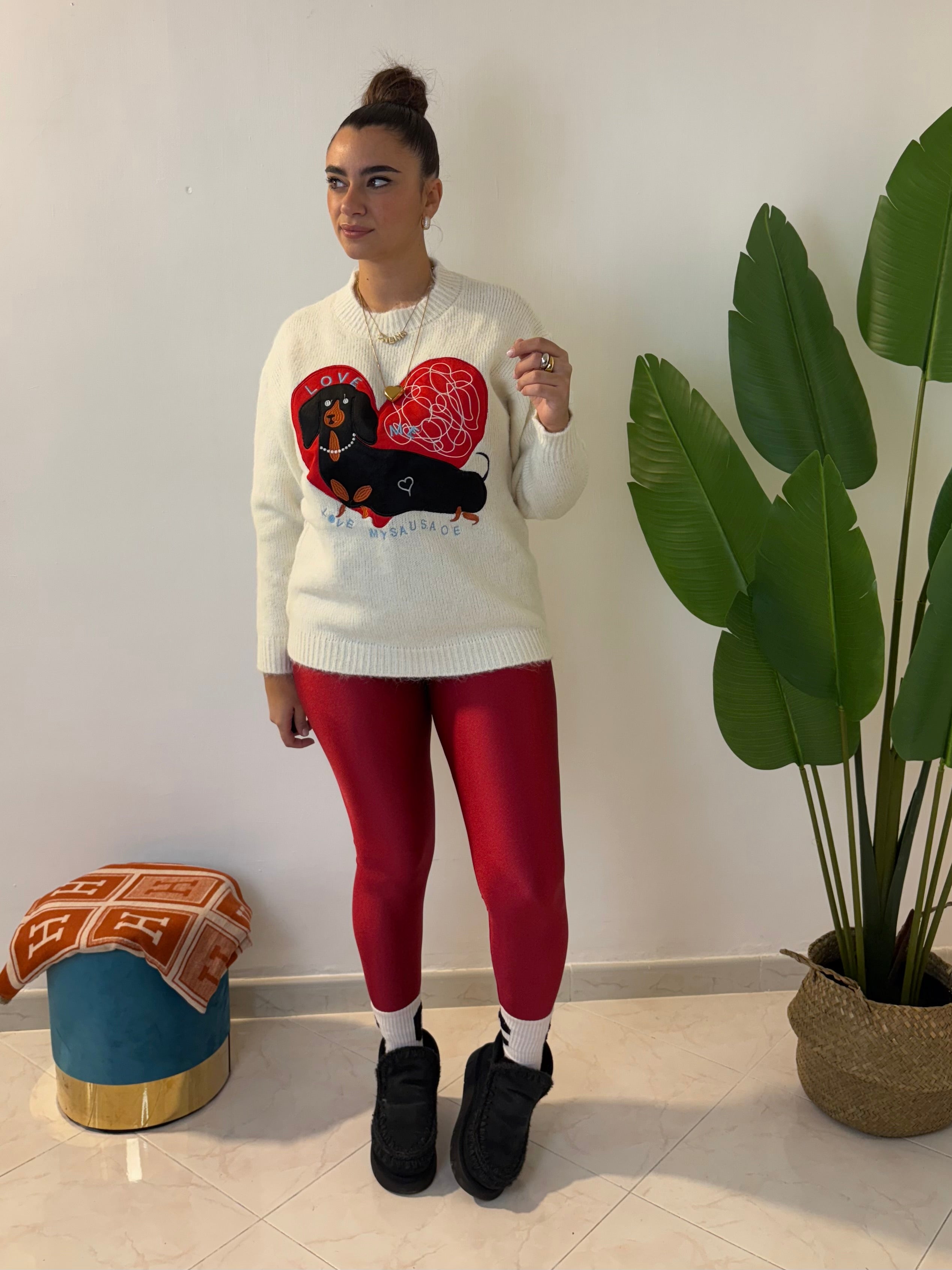 Maglioncino con stampa sul davanti, veste da una xs ad una XL. Lana super morbida.